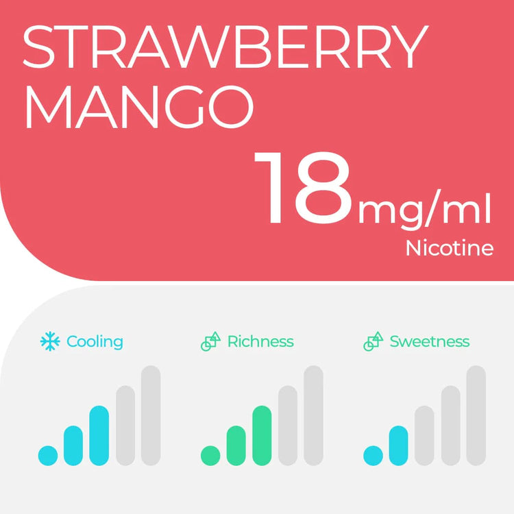 Strawberry Mango - A tango fusion of juicy strawberries and tasty mangoes creates a unique flavor profile, satisfying those who need stronger and richer bursts of fruitiness.